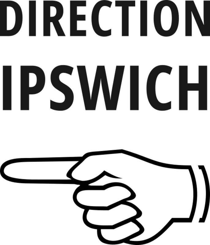 The text "Direction Ipswich" and a hand pointing to the wearer's right